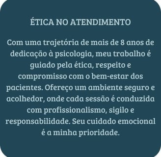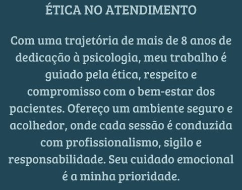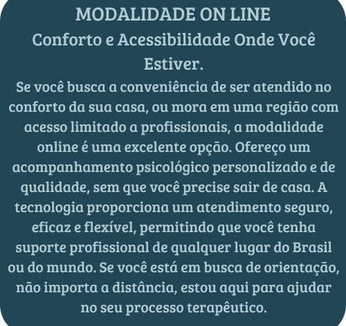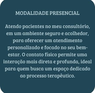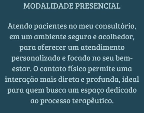 Ambas as modalidades são conduzidas com o mesmo compromisso ético e profissionalismo, garantindo a qualidade do atendimento, seja presencialmente ou por vídeo chamada. A confidencialidade, o respeito à privacidade e o cuidado com o processo terapêutico são sempre mantidos, independentemente do formato escolhido.